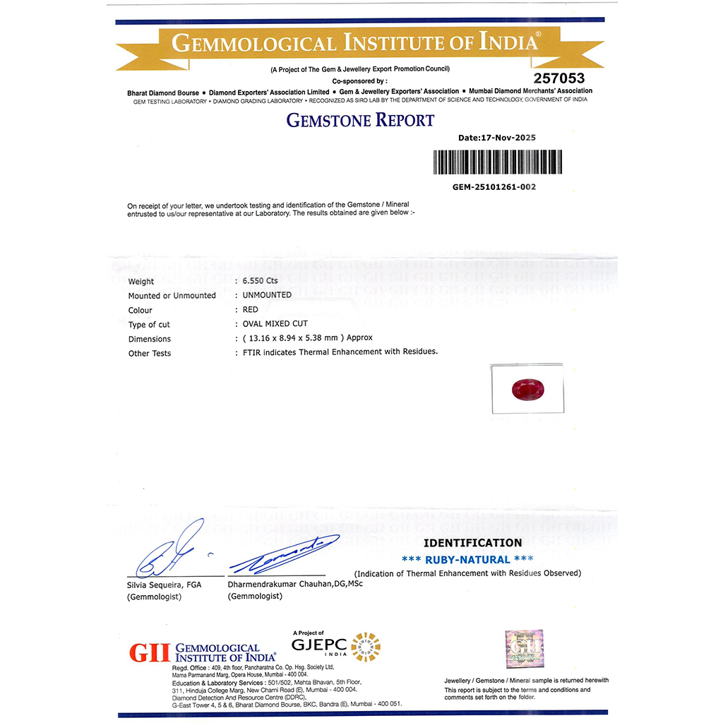 | WEIGHT | 6.55 CARAT |