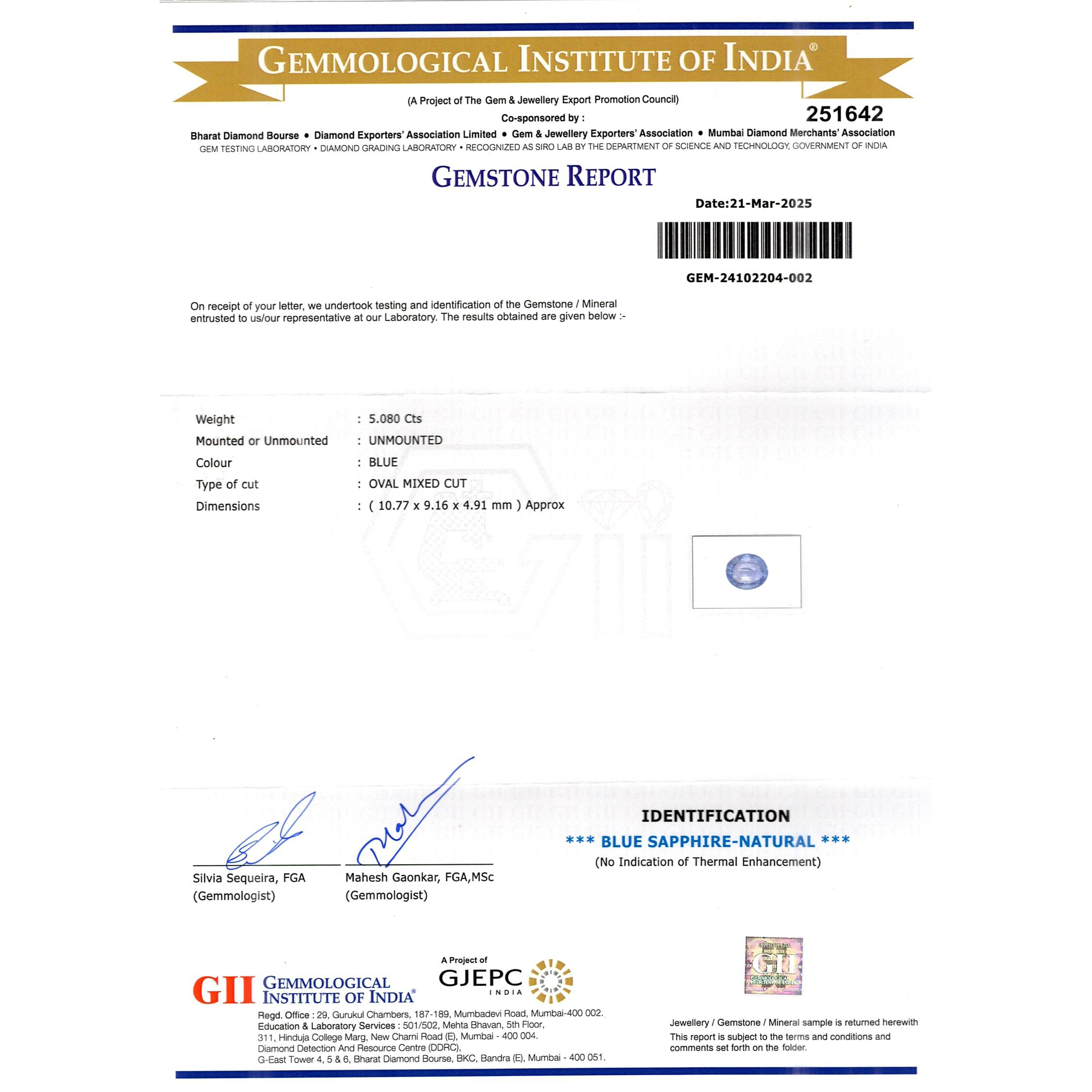 | WEIGHT | 5.08 CARAT |